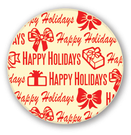 Happy Holidays Print - Red - Round Med - 192 / case